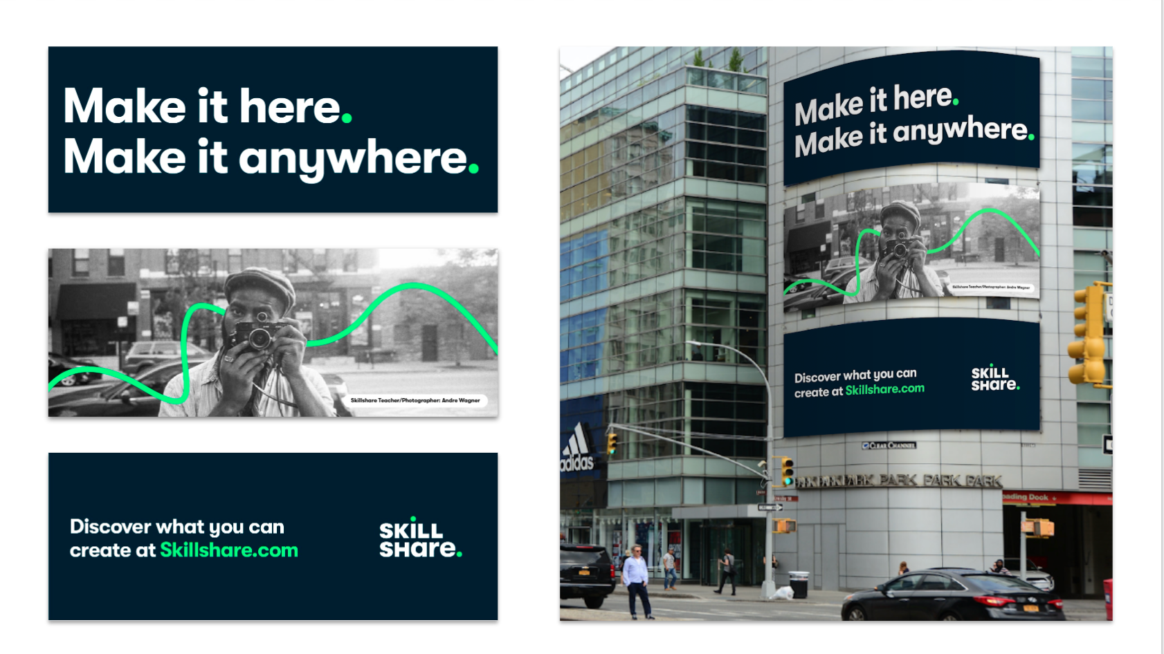 In September of 2019, Skillshare embarked on an ambitious effort to better align the Skillshare brand with how the company had evolved and where it was going. Narrowing to a focus on its creative audience, the new brand highlighted how creative exploration leads to self-discovery. We launched the new brand to acclaim on January 1, 2020.